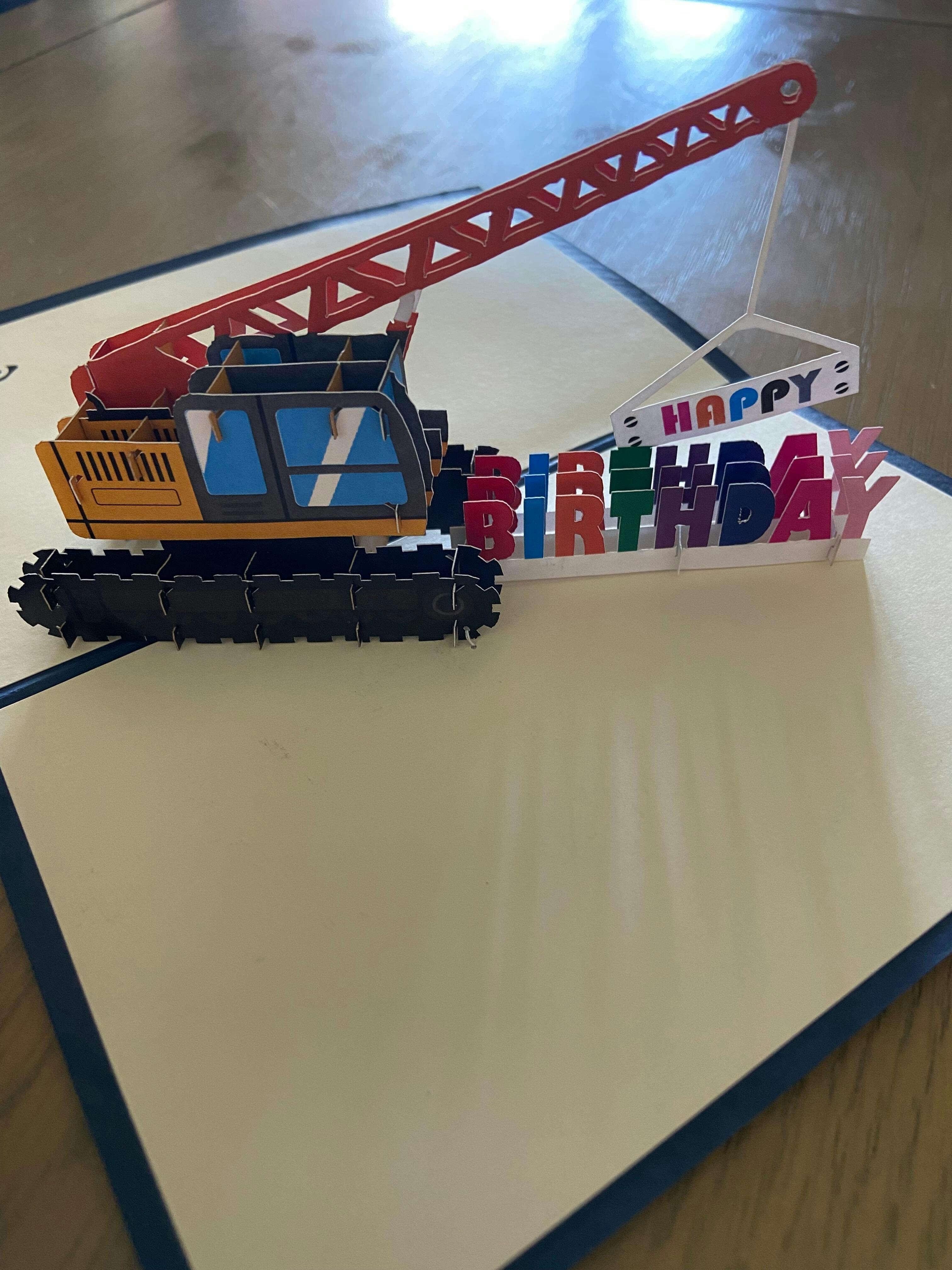 Say "Happy Birthday" with this construction-themed birthday card! Featuring a pop up crane, it's the perfect way to wish your favorite builder a wonderful day.