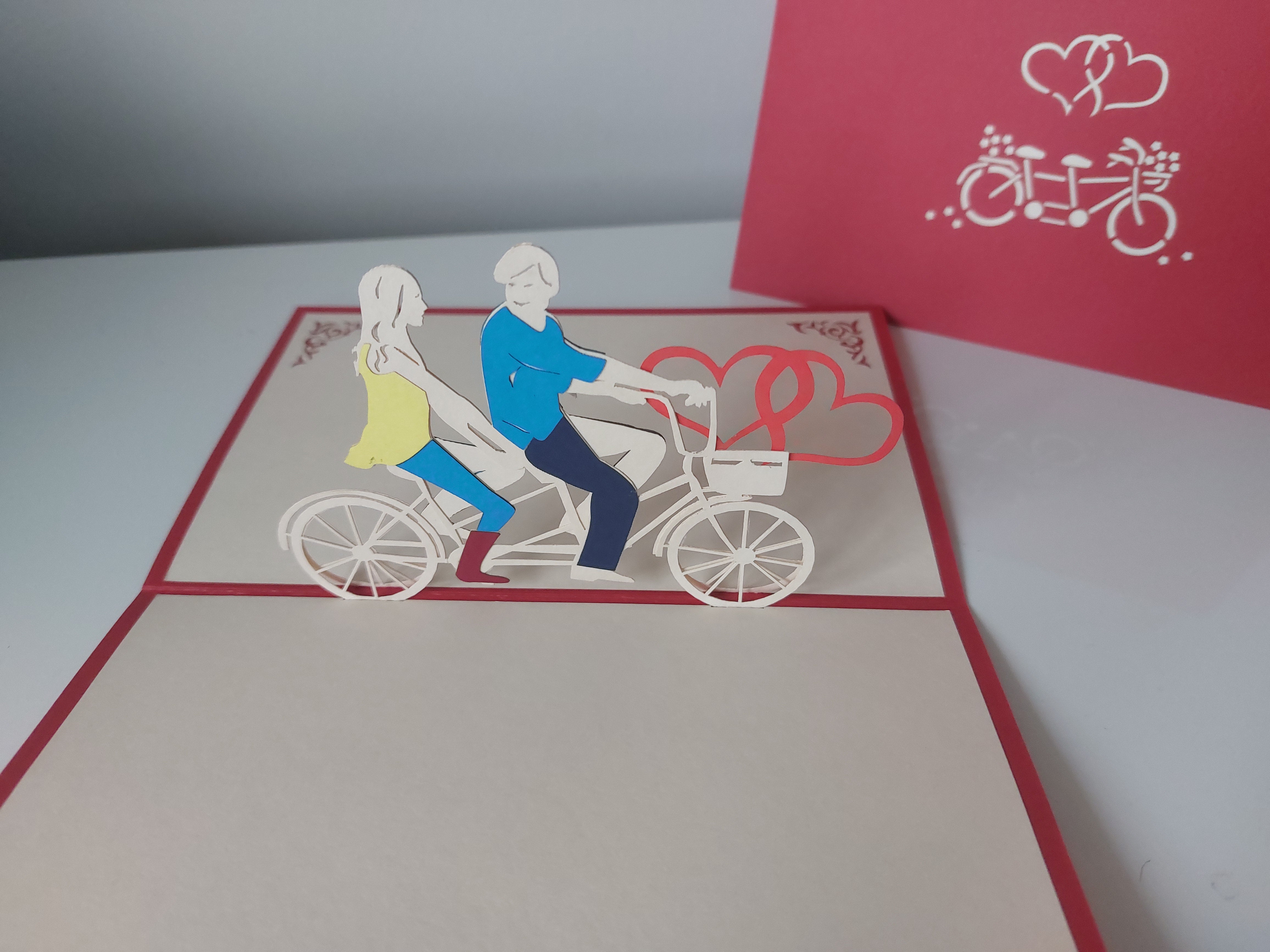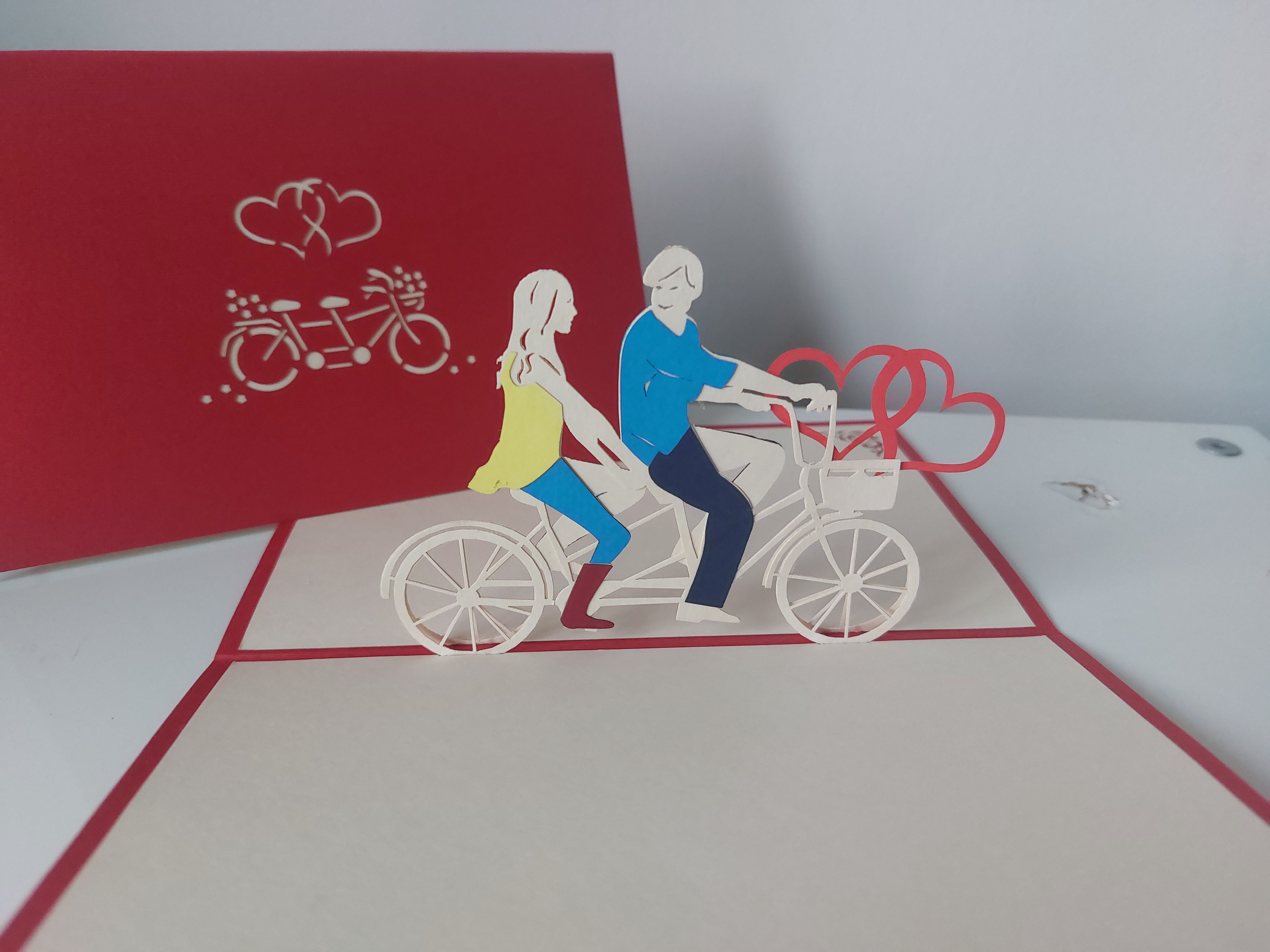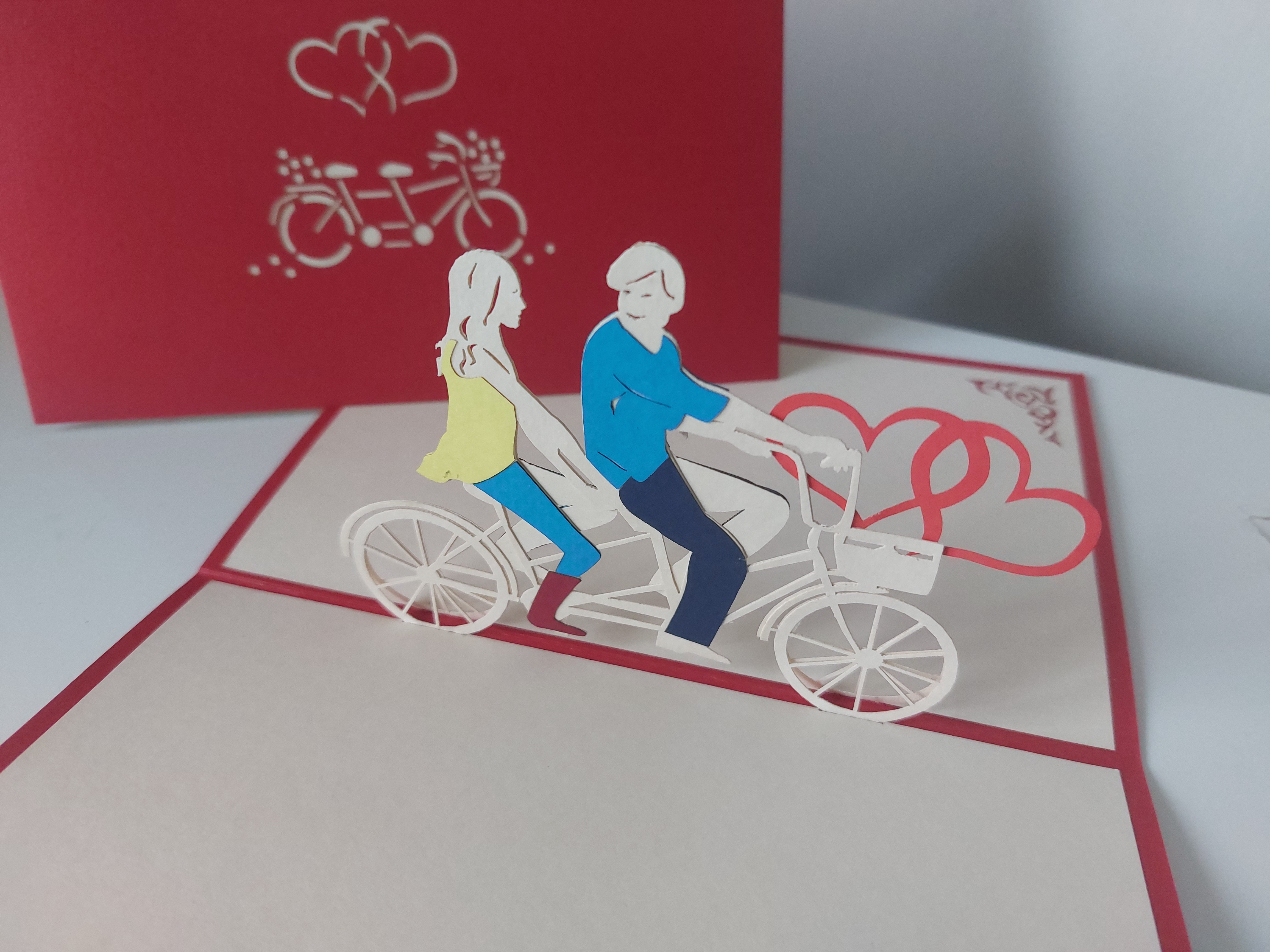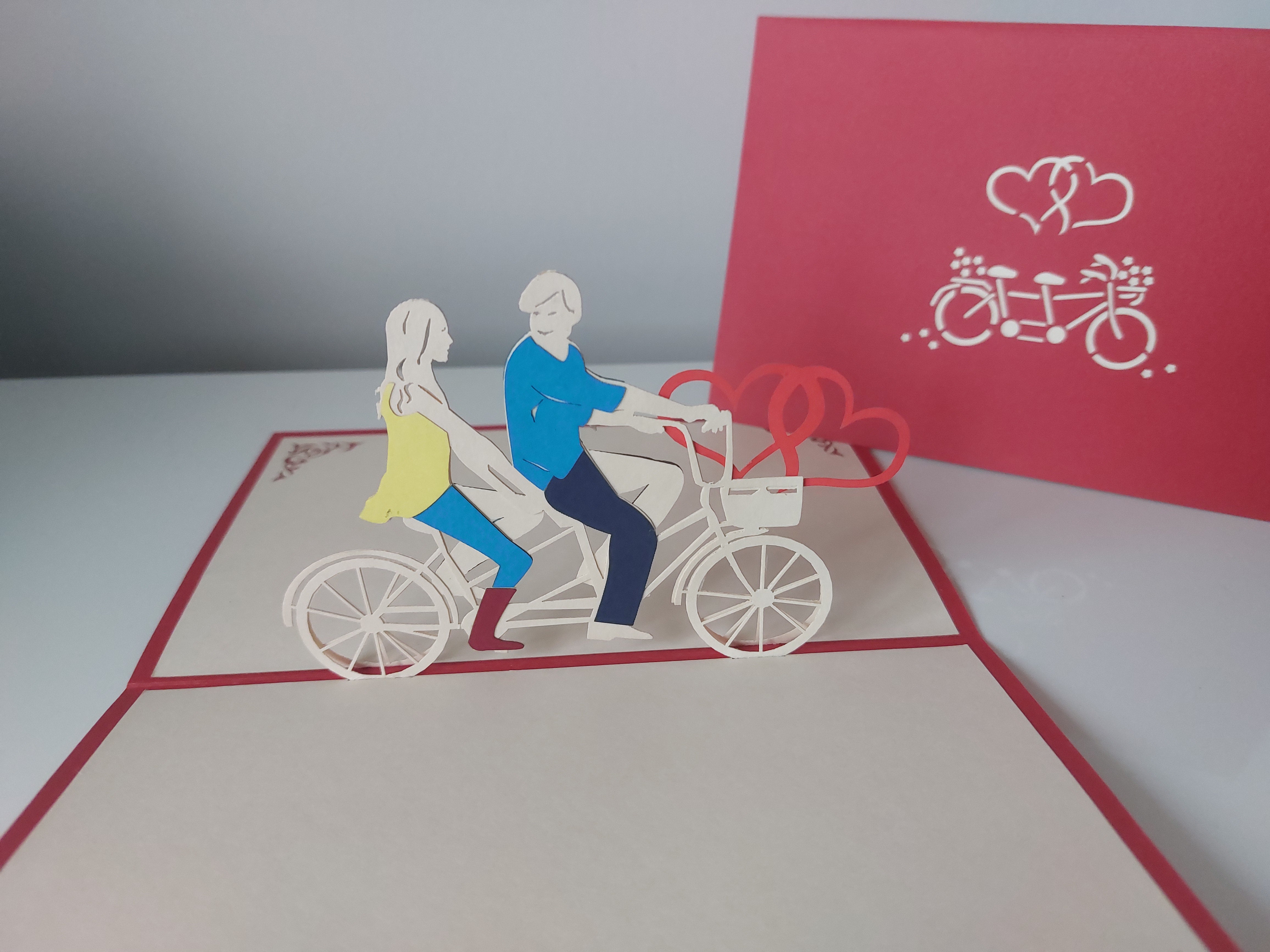 Experience double the fun with our Tandem Bike! Get ready for an adventure together and spread joy with this loved up pop up card.