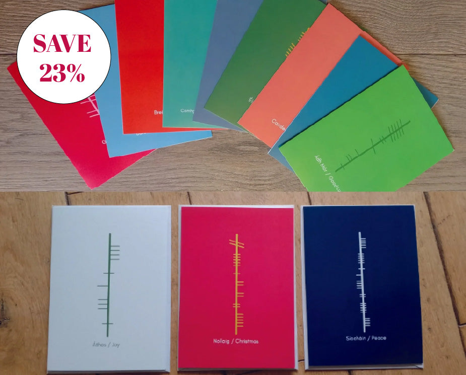 Our 18 pack of Ogham greeting cards cover many occasions, including Christmas.