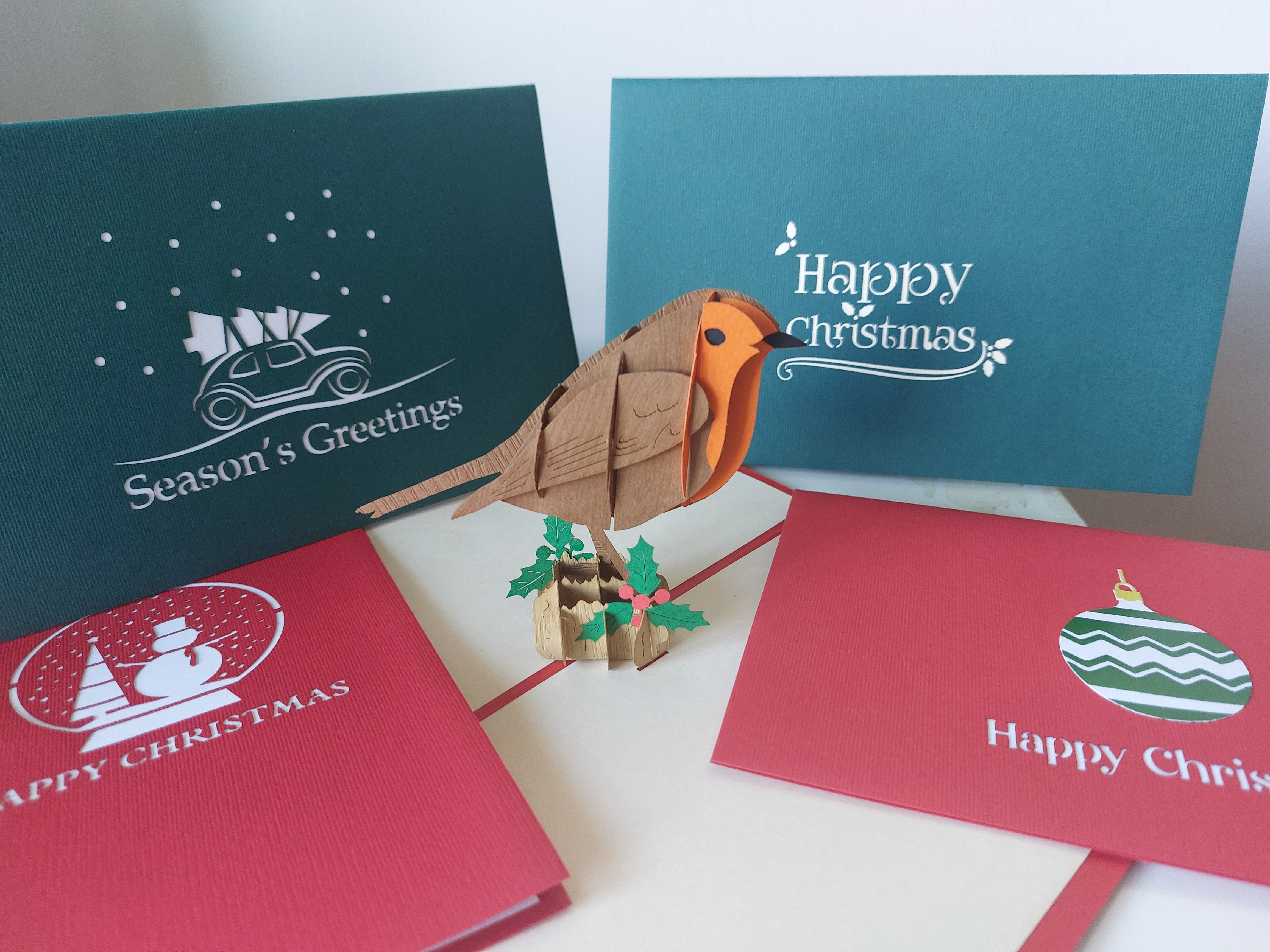 Spread Christmas cheer with this delightful 12-pack of pop-up greeting cards. Each card features a unique festive design, from cosy winter scenes and traditional robins to cheerful snowmen and elegant poinsettias. The interactive pop-up element transforms every greeting into a memorable keepsake your loved ones won't forget. Perfect for sending warmth and wonder throughout the season.