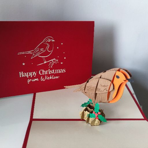 Send holiday cheer this Christmas with our Irish designed Christmas robin pop-up card!