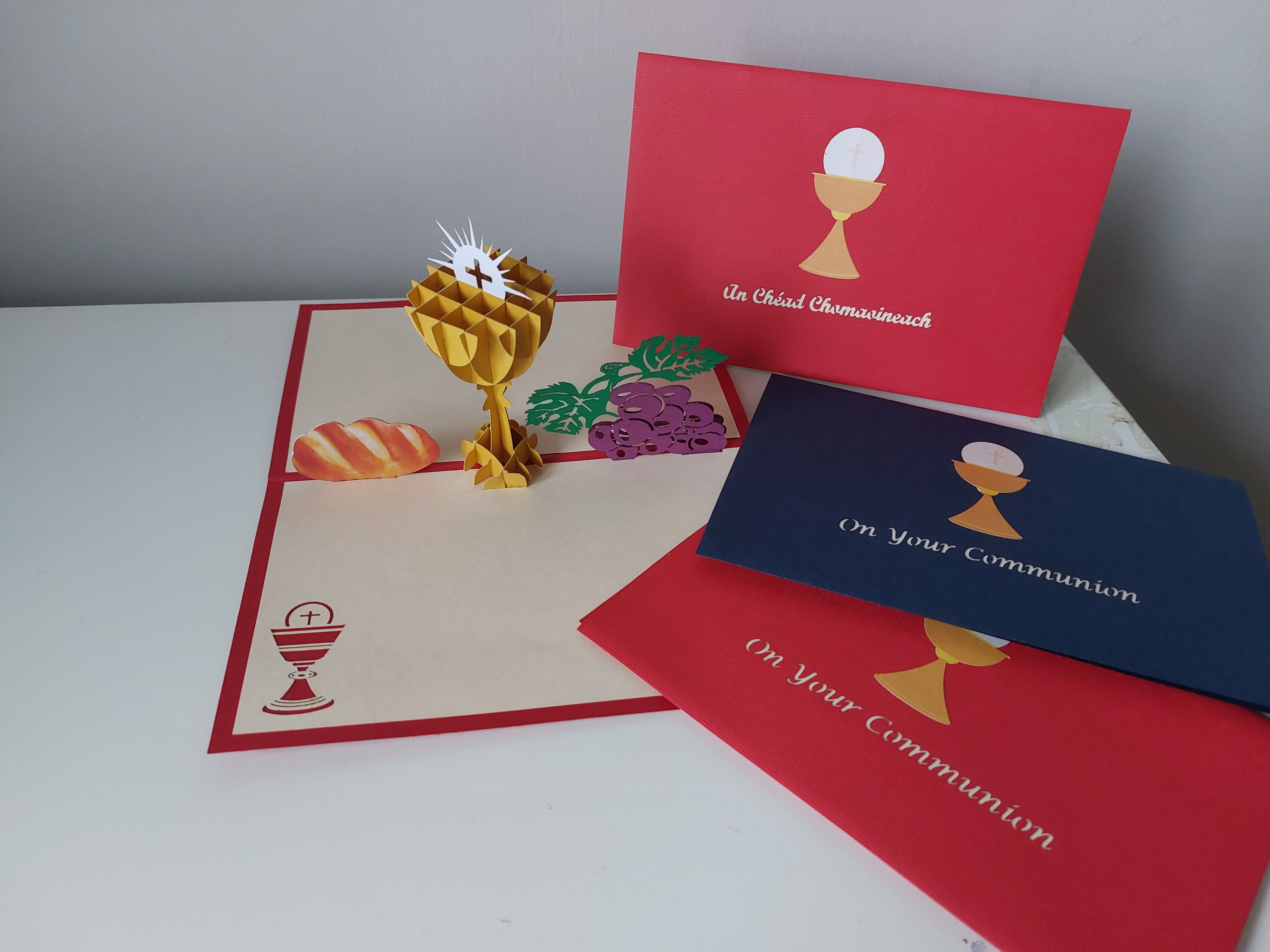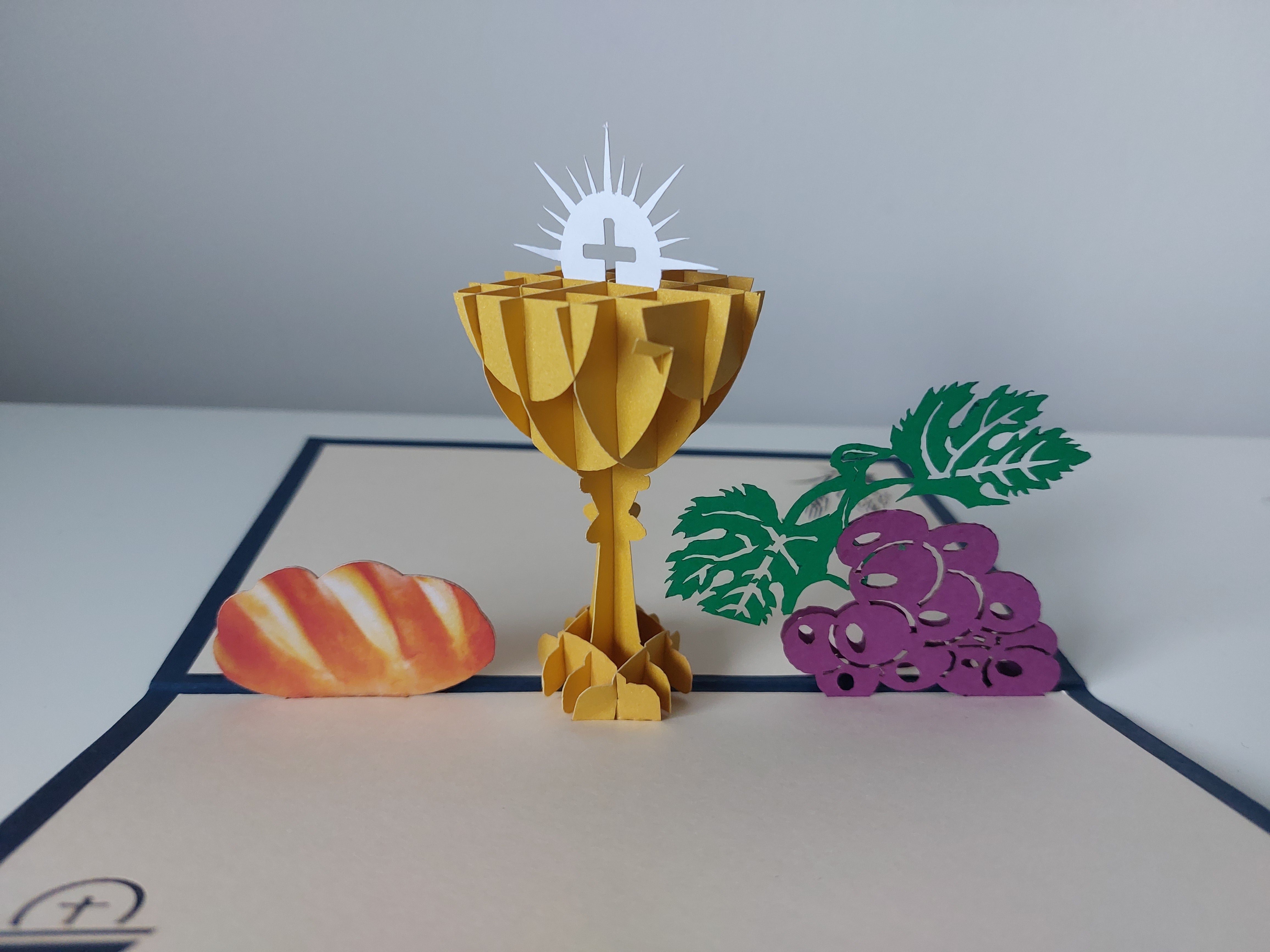 Experience the beauty and tradition of communion in a unique way with our Communion cup pop up card. Perfect for gifting or displaying, this intricate card brings the sacrament of communion to life. Celebrate this special occasion with a meaningful and memorable keepsake.