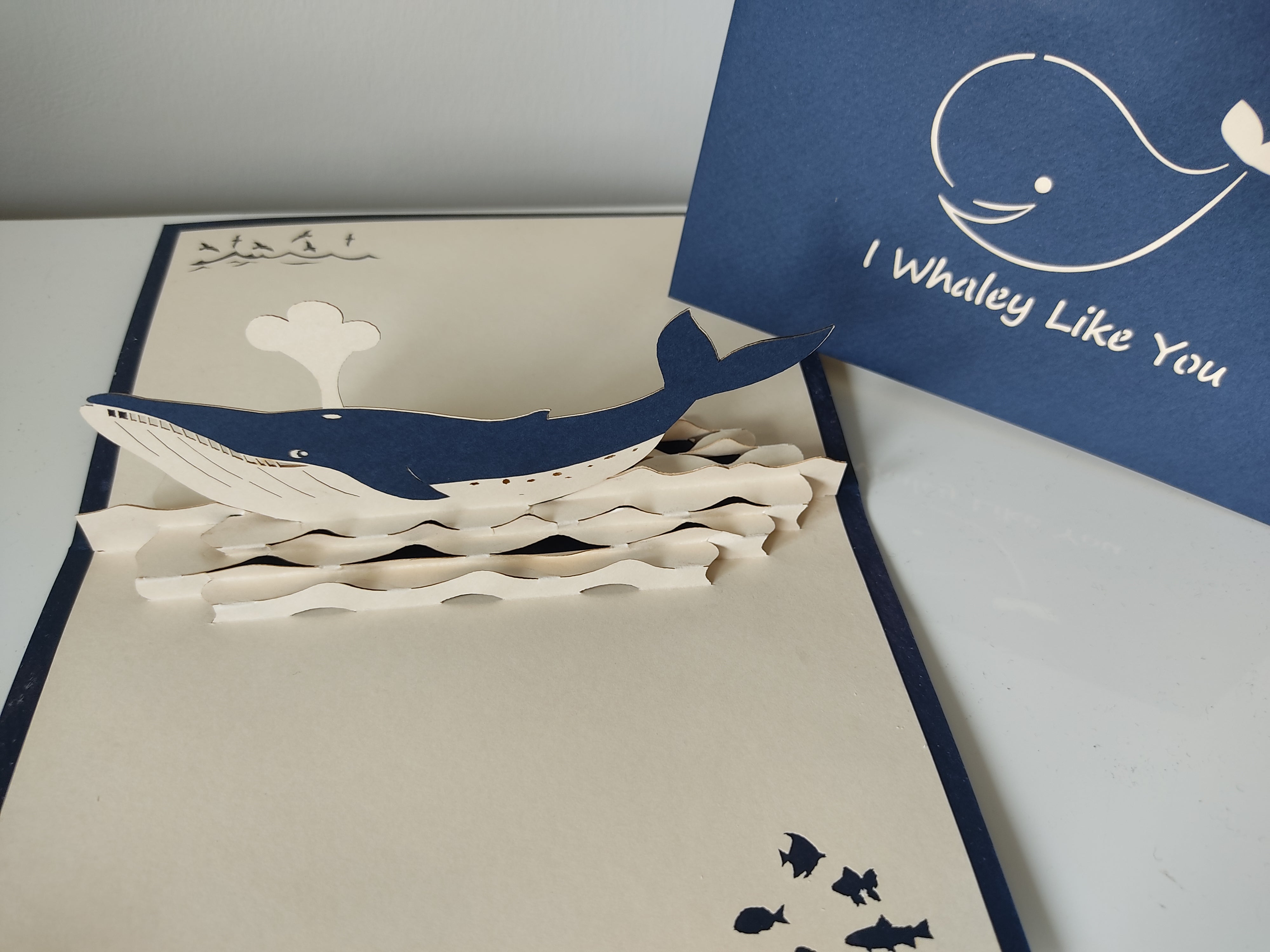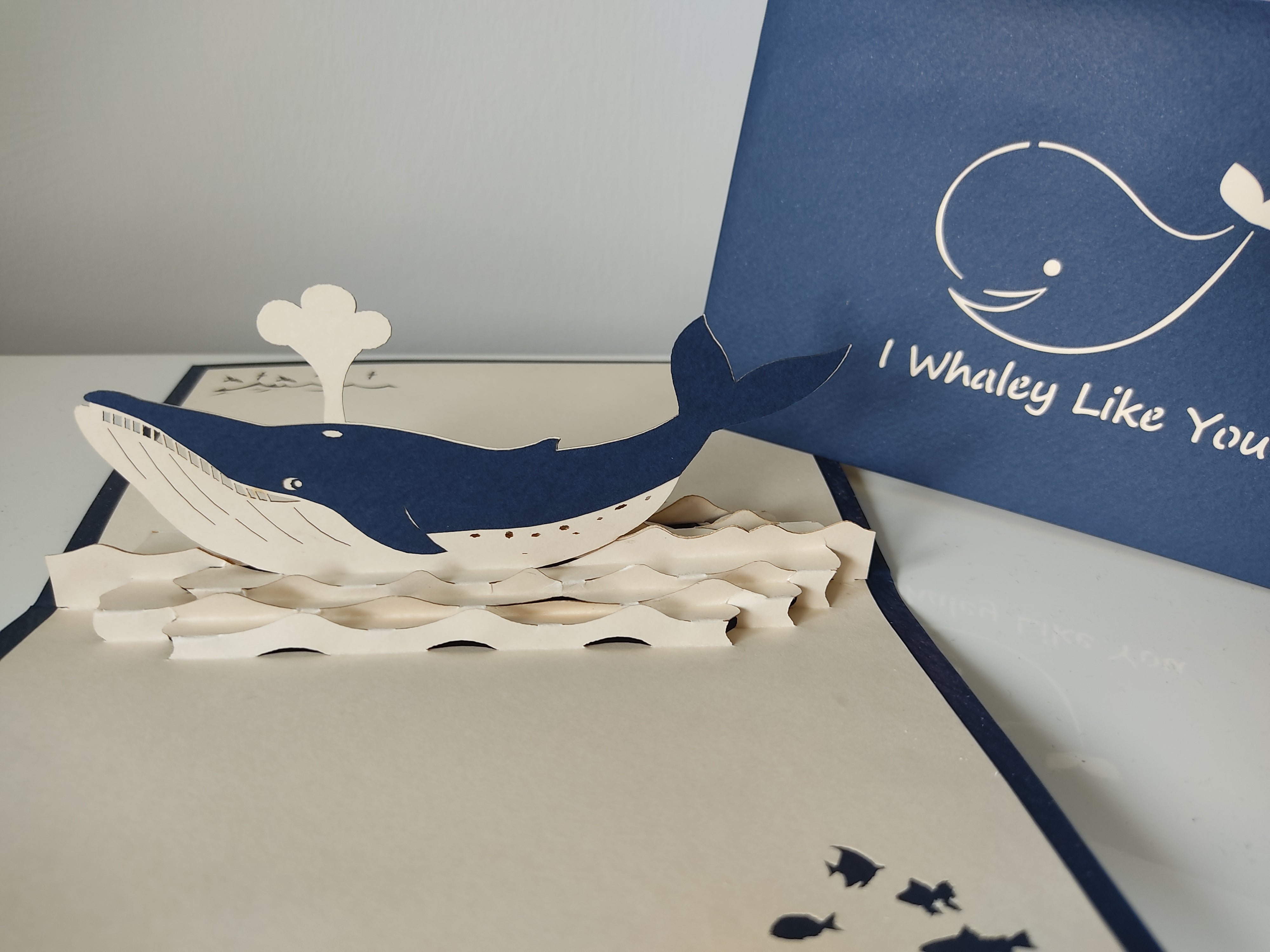 Show someone you really like them with the "I Whaley Like You" pop up card featuring a cute whale design. This playful card is sure to make them smile!