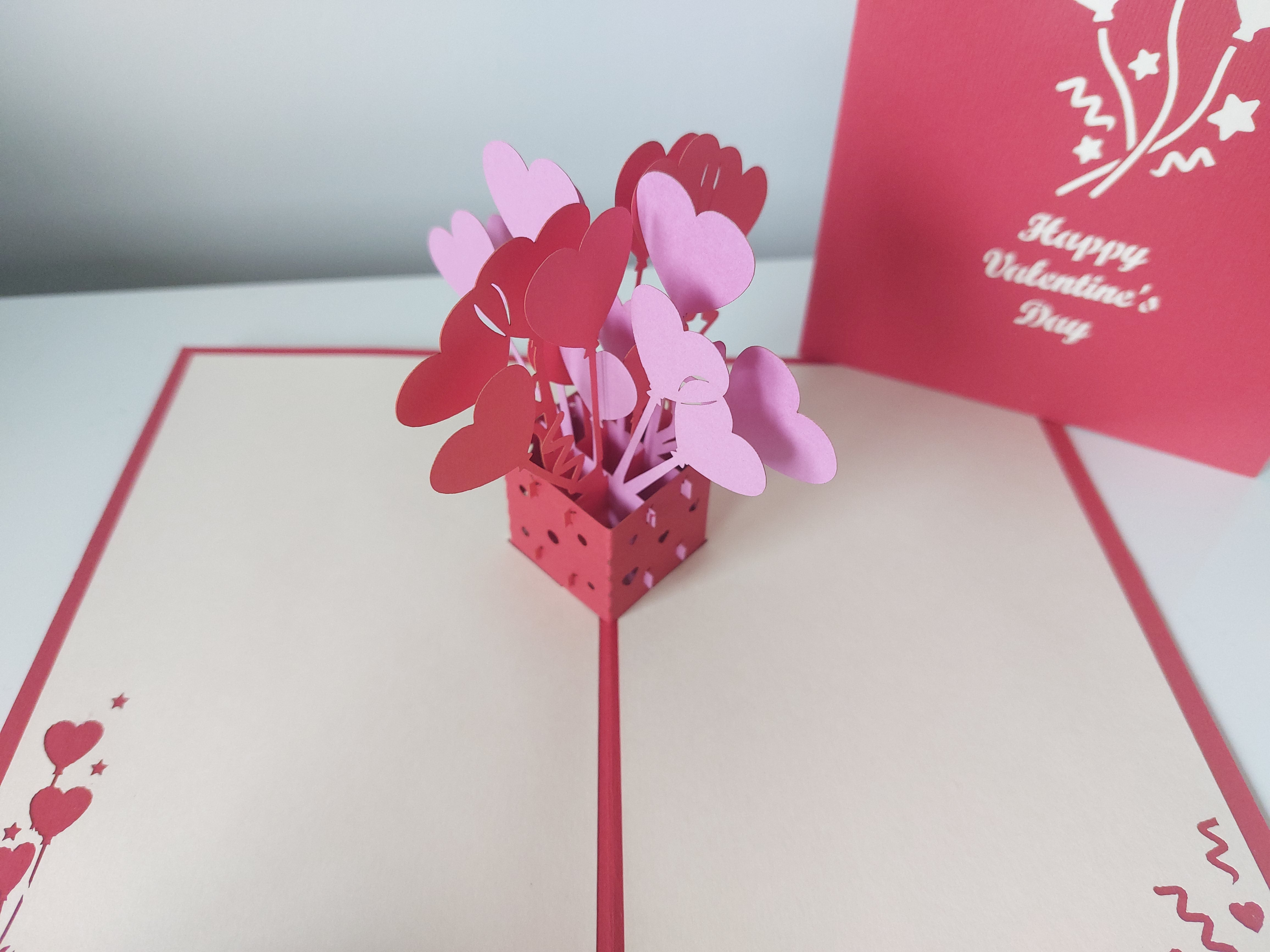 Spread the love this Valentine's Day with our Valentine's Hearts pop up card. The card features a colorful bouquet of heart balloons that will surely make your loved one's heart soar. Perfect for expressing your love in a fun and unique way. (Balloons cannot be popped!)
